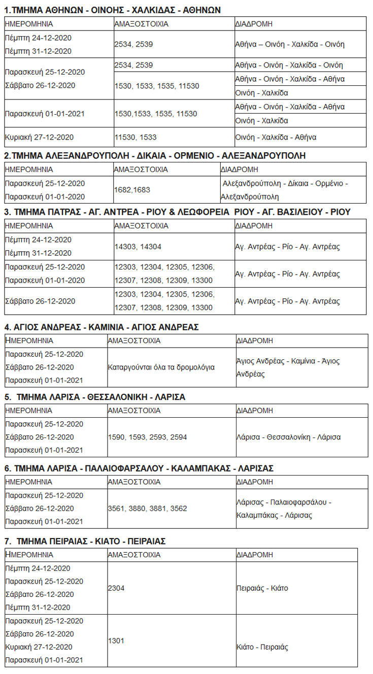 Αναλυτικά τα δρομολόγια που αναστέλλονται είναι τα εξής: