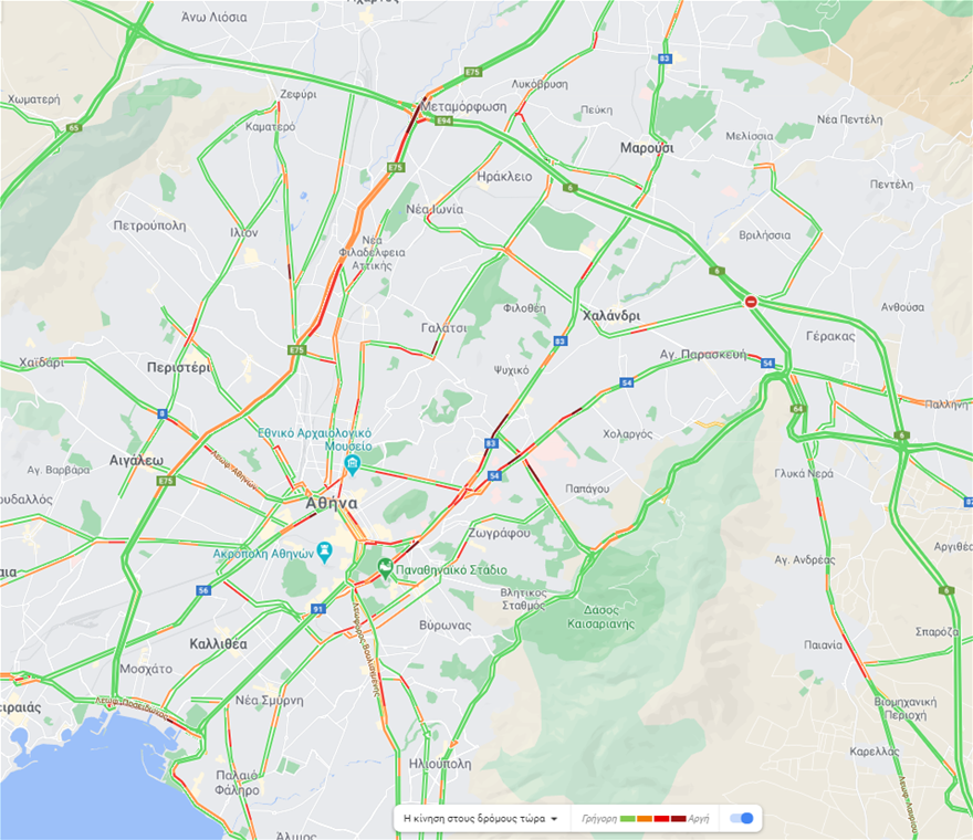 Δείτε σε ποιους δρόμους της Αττικής υπάρχει αυξημένη κίνηση (χάρτης)
