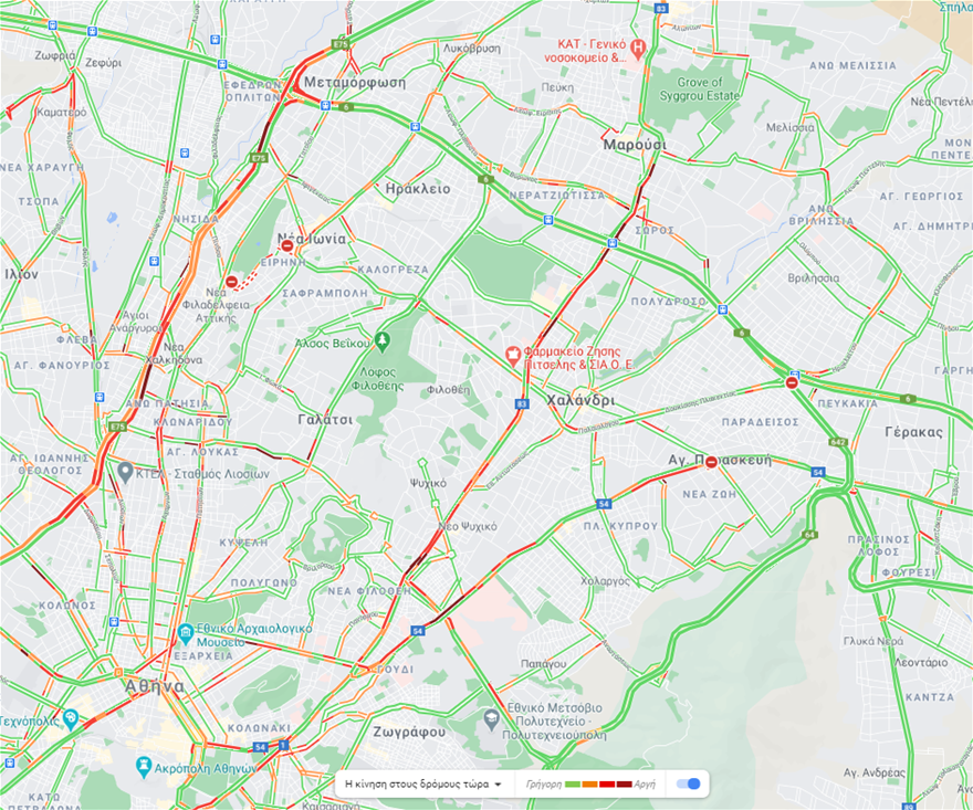 Σύμφωνα με επίσημη ενημέρωση από την Τροχαία, χαμηλές ταχύτητες καταγράφονται και στο «Δαχτυλίδι», στο ρεύμα προς Κηφισιά.