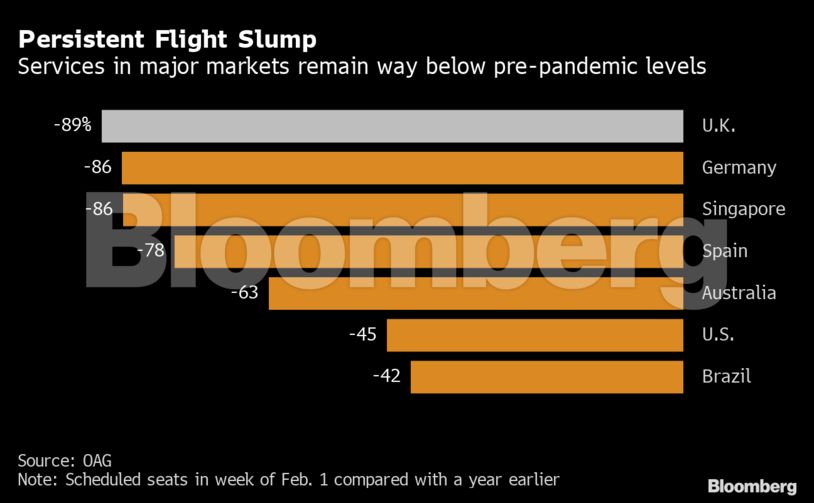 Δυσοίωνες προβλέψεις από το Bloomberg για το μέλλον των αεροπορικών εταιριών, καθώς σύμφωνα με όσα υποστηρίζει η επιστροφή στην κανονικότητα γι’ αυτές θα έρθει μετά το 2022.