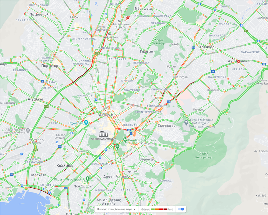Κίνηση καταγράφεται και στη λεωφόρο Μεσογείων, στο ρεύμα προς Αθήνα, στη συμβολή της λεωφόρου με την Κατεχάκη.