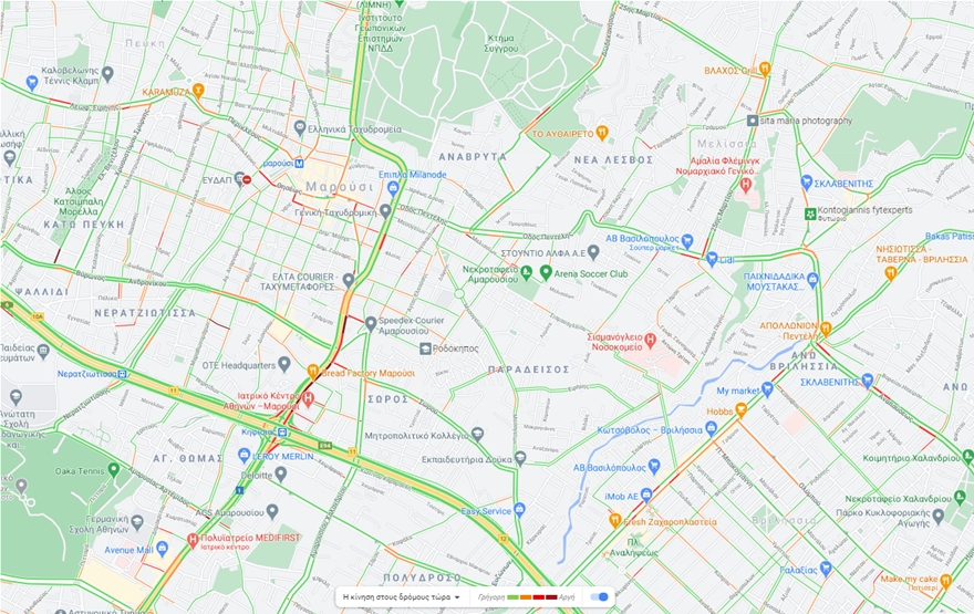 Στο «κόκκινο» είναι αυτή την ώρα η κίνηση επί της λεωφόρου Κηφισίας.