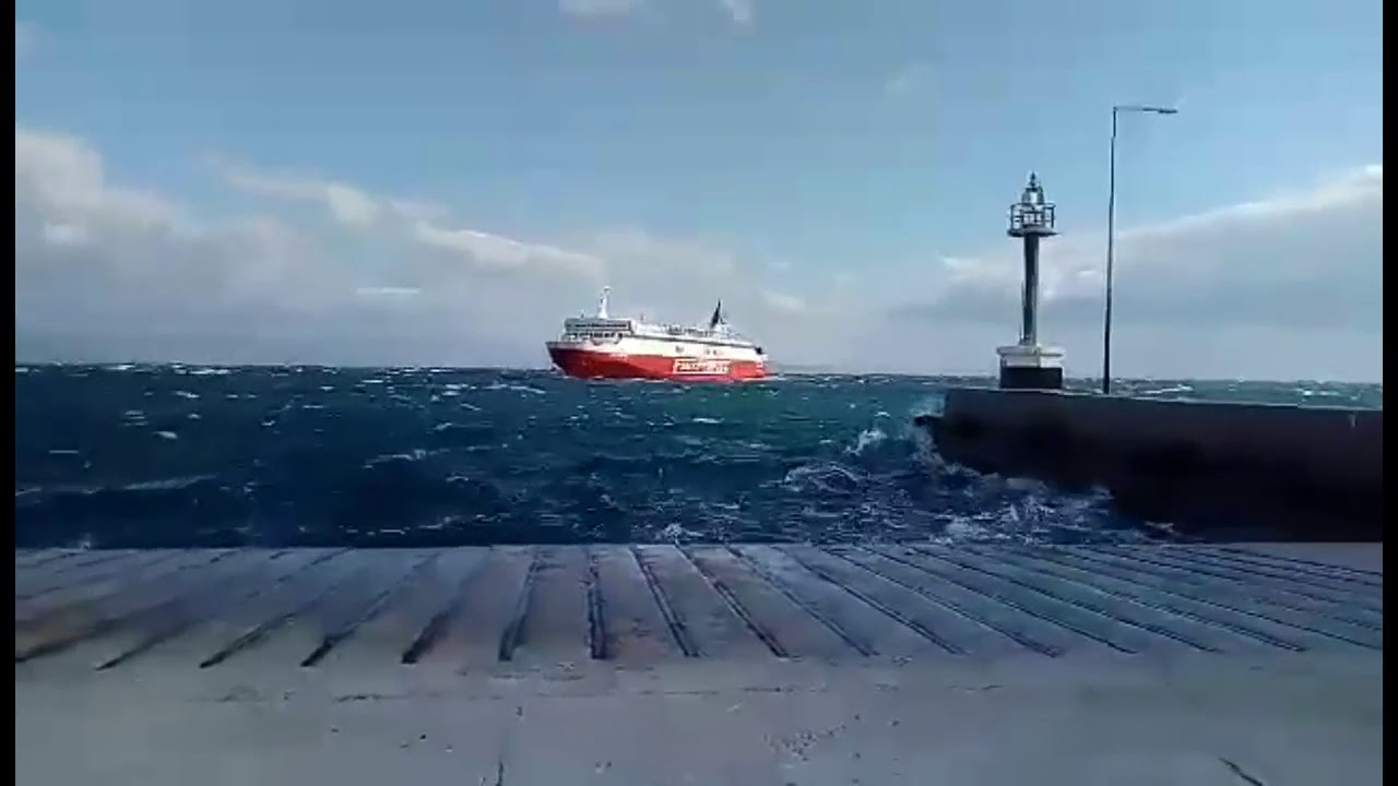 Στο βίντεο που ακολουθεί φαίνεται η προσπάθεια του πλοίου “Power Jet” να δέσει στο λιμάνι, κάτι που έγινε τελικά.