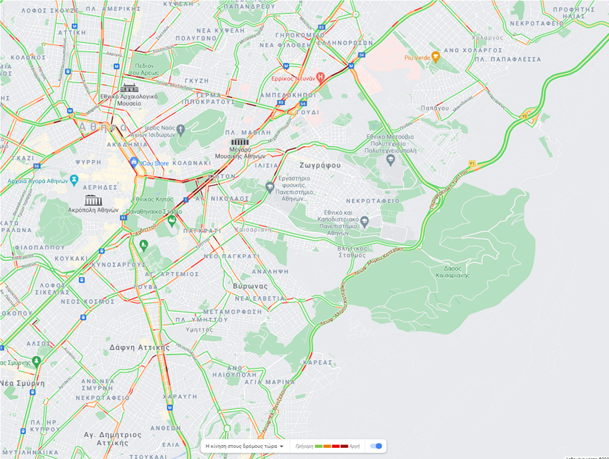 Με εξαιρετικά χαμηλές ταχύτητες κινούνται αυτή την ώρα τα οχήματα στο κέντρο της Αθήνας.