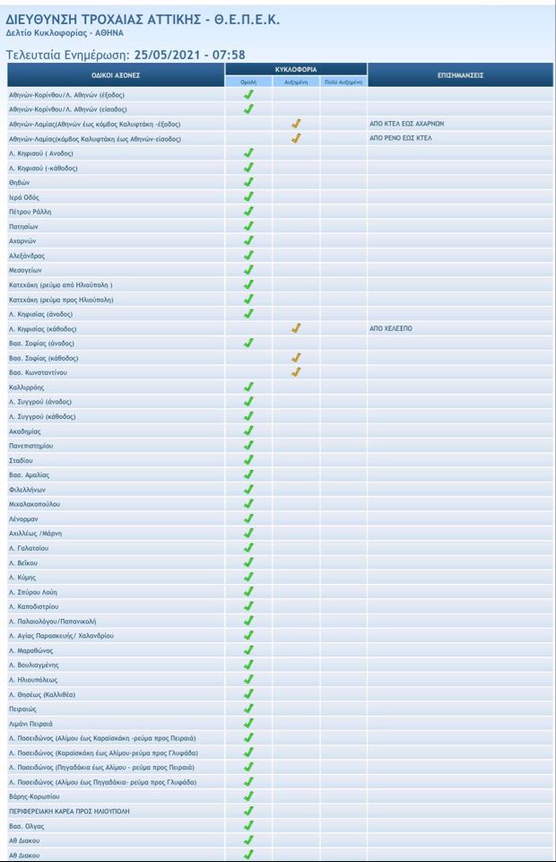 Αρκετά αυξημένη είναι η κίνηση στους δρόμους της Αθήνας, το πρωί της Τρίτης 25 Μαΐου.
