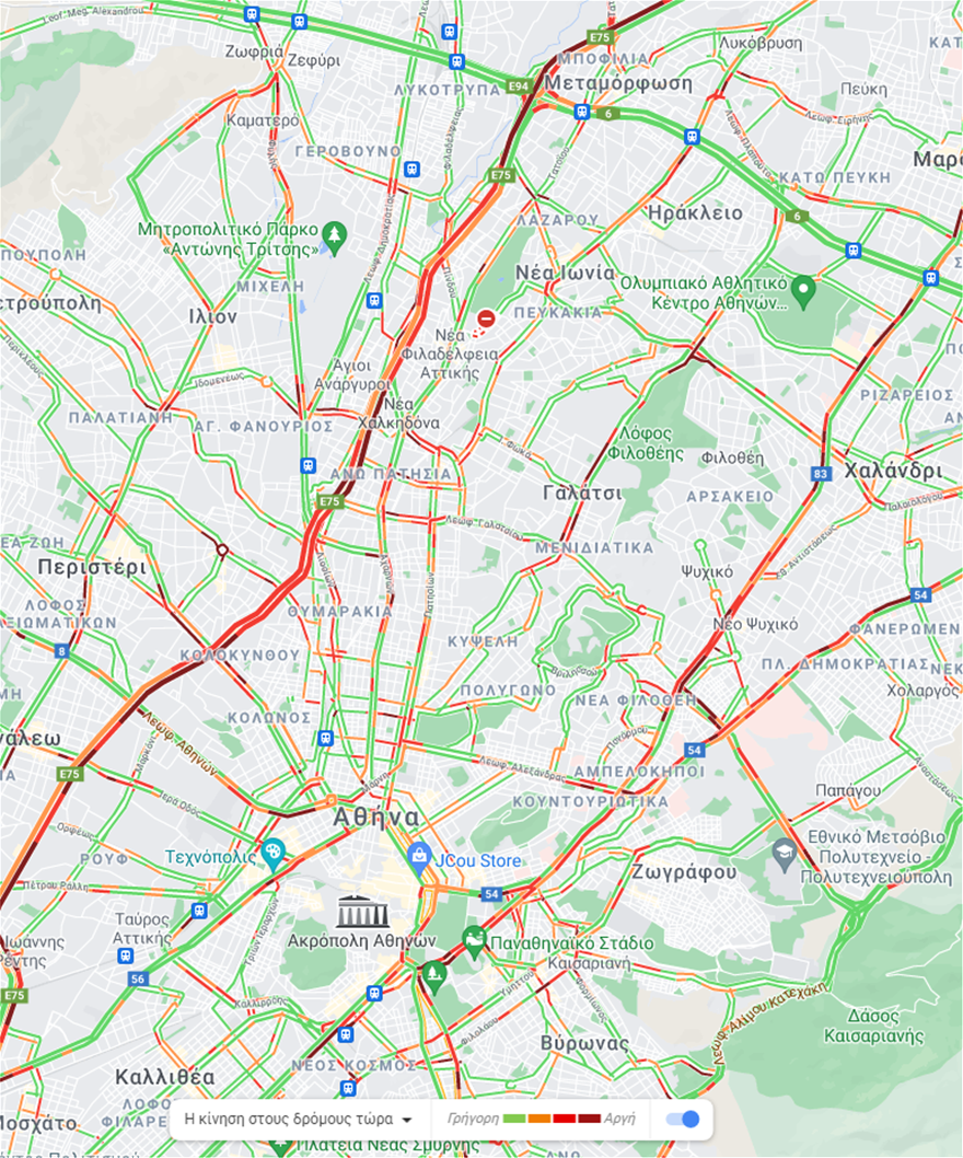 Η κίνηση στους δρόμους από την Google (ώρα 08:30)