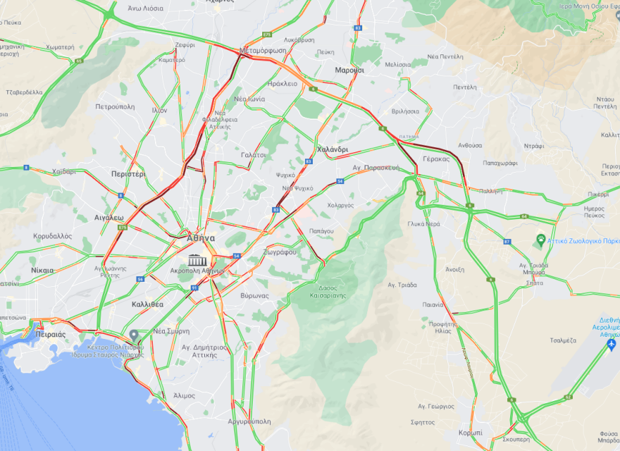 Αυξημένη η κίνηση στους δρόμους της Αθήνας – Δείτε το χάρτη