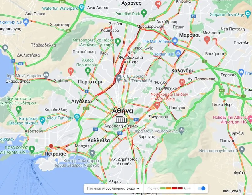 Αυξημένη κίνηση και στην κάθοδο της Κηφισίας προς το κέντρο της Αθήνας, την κάθοδο της Μεσογείων, την Κατεχάκη από Αττική Οδό προς Κηφισίας, τον Καρέα προς Κατεχάκη, την παραλιακή λεωφόρο Ποσειδώνος στο ρεύμα προς Πειραιά αλλά και την λεωφόρο Αθηνών από το Χαϊδάρι προς τον Ασπρόπυργο.