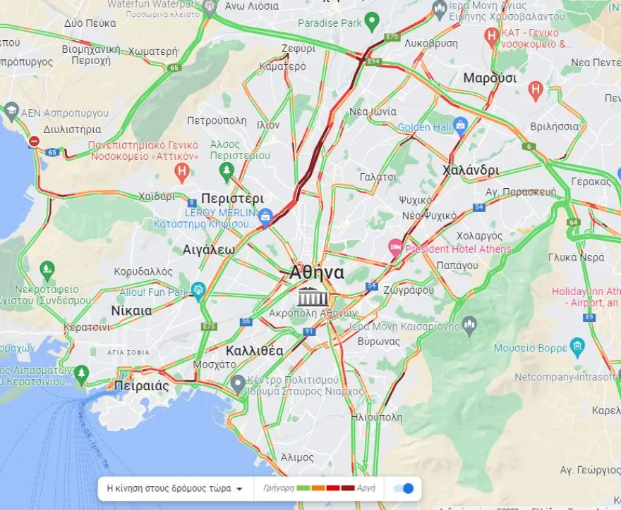 Δυσκολίες κατά τμήματα και στην κάθοδο της Κηφισίας και της Μεσογείων, στο κέντρο της Αθήνας, στον Καρέα προς Κατεχάκη και στη λεωφόρο Αθηνών προς Σκαραμαγκά.