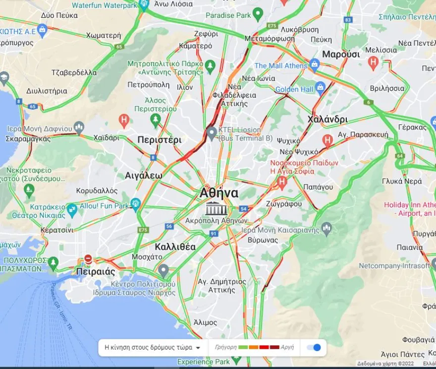 Δείτε χάρτη με την κίνηση λίγο μετά τις 8 το πρωί της Τρίτης (11/10)