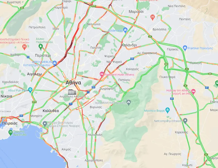 Ειδικότερα, υπομονή χρειάζεται να έχουν οι οδηγοί των οχημάτων στη λεωφόρο Κηφισού και στα δύο ρεύματα, καθώς η κυκλοφορία διεξάγεται με ιδιαίτερα χαμηλές ταχύτητες και με μεγάλα διαστήματα ακινησίας.