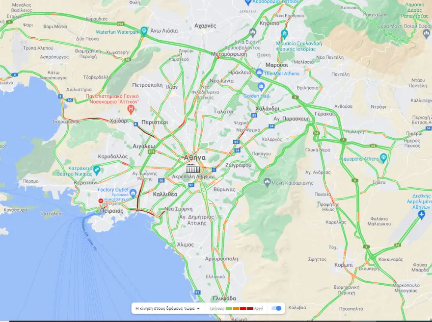 Χαμηλές ταχύτητες εντοπίζονται και στη λεωφόρο Βασιλίσσης Σοφίας στο ρεύμα προς Αθήνα και επί της λεωφόρου Βασιλέως Κωνσταντίνου, στο καθοδικό ρεύμα, από Χίλτον.