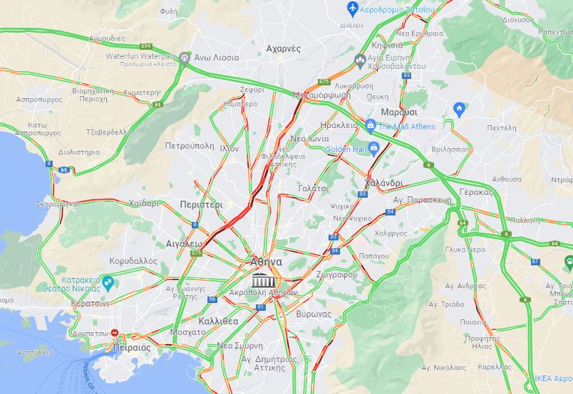 Κίνηση: Σε ποιους δρόμους της Αττικής υπάρχει μποτιλιάρισμα (χάρτης)