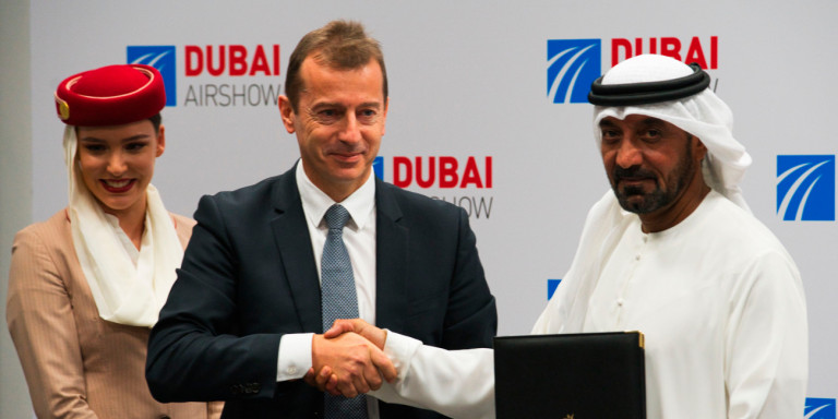 Μια παραγγελία – «μαμούθ» 50 αεροσκαφών από την Emirates, συνολικού κόστους 16 δισ. δολαρίων εξασφάλισε η Airbus, το πρώτο μεγάλο συμβόλαιο που ανακοινώνεται στη διάρκεια της έκθεσης αεροσκαφών στο Ντουμπάι.