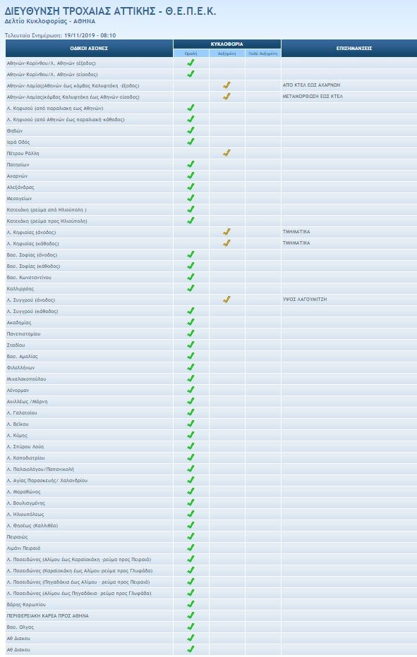 Σύμφωνα με την ενημέρωση από την Τροχαία αυξημένη κίνηση παρατηρείται στα εξής σημεία: