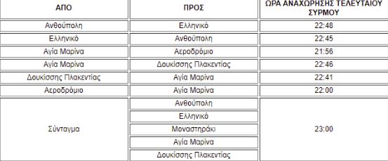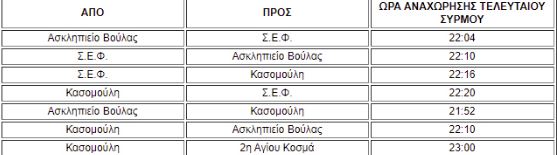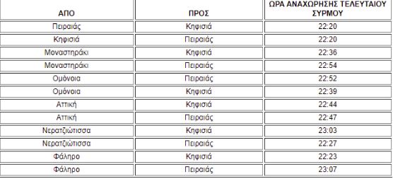 Οι τελευταίοι συρμοί θα αναχωρήσουν ως εξής