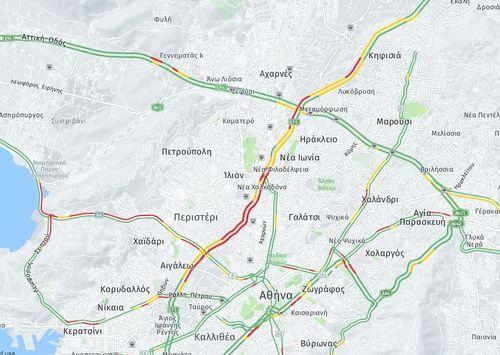 Συγκεκριμένα, κυκλοφοριακό χάος επικρατεί στον Κηφισό και στα δύο ρεύματα, με τις ουρές των αυτοκινήτων να είναι μεγάλες.