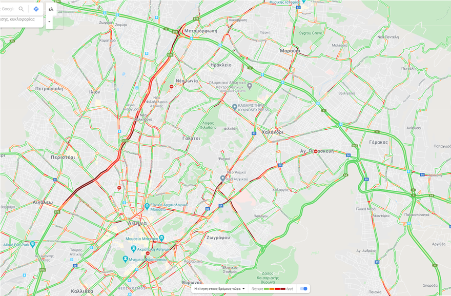 Συγκεκριμένα, μποτιλιάρισμα καταγράφεται στο ύψος της Μεταμόρφωσης στο ρεύμα προς Πειραιά, αλλά και στο ύψος του Περιστερίου.