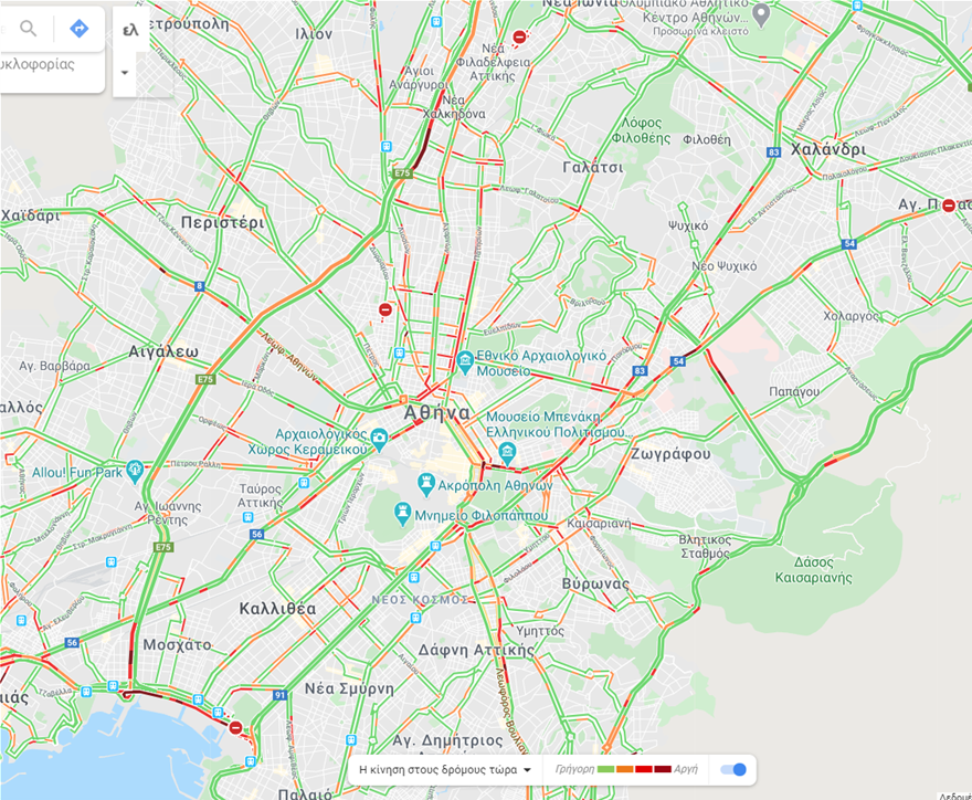 Μποτιλιάρισμα αυτή την ώρα σε κεντρικούς οδικούς άξονες της Αττικής.