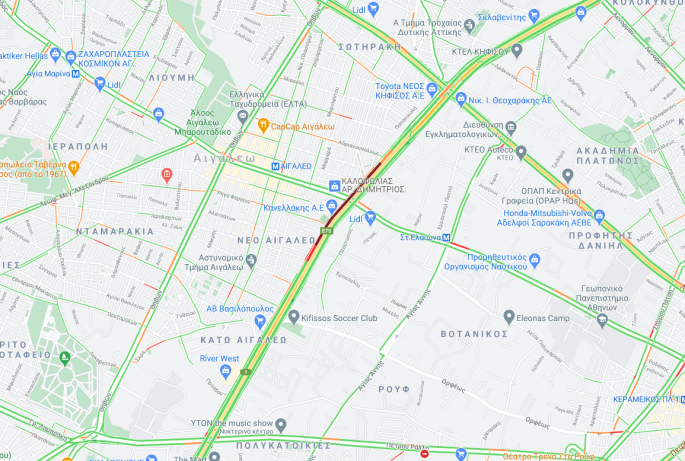 Λόγω του τροχαίου υπάρχει διακοπή της κυκλοφορίας προς Πειραιά στη Λ.Κηφισού στο ύψος της συμβολής με την Ιερά Οδό.