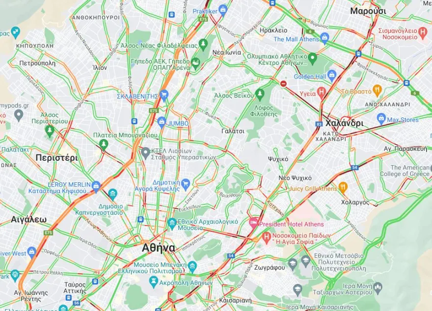 Τέλος, με χαμηλές ταχύτητες κινούνται οι οδηγοί επί της Λ. Ποσειδώνος από Αγ.Κοσμά έωας Λ.Καλαμακίου αλλά και στο Δέλτα Φαλήρου.