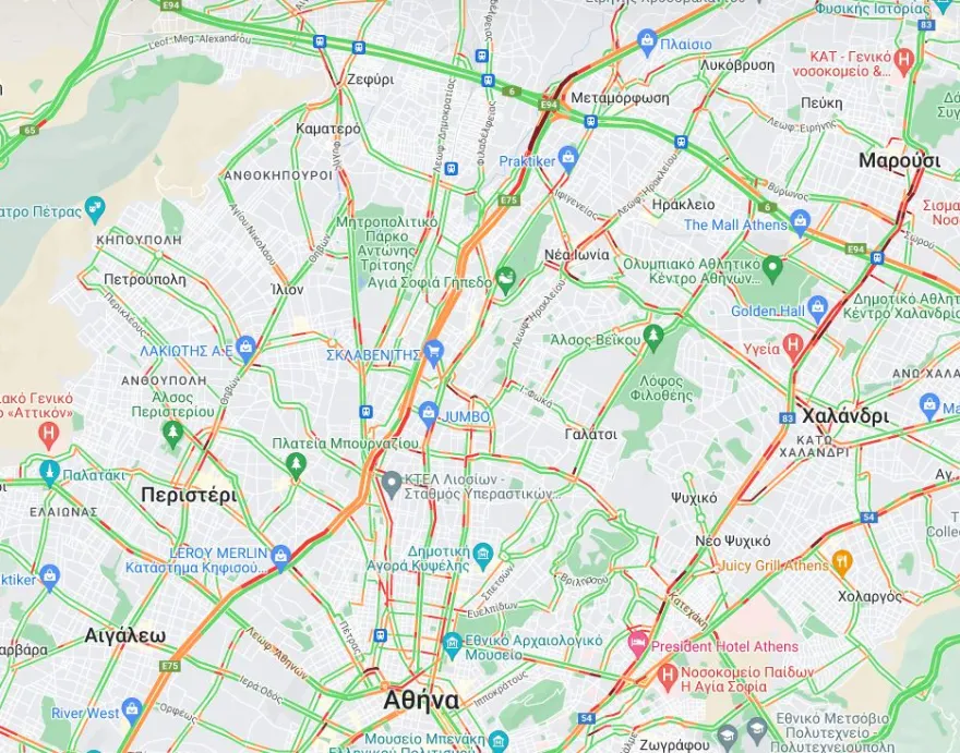 Την ίδια ώρα, με χαμηλές ταχύτητες κινούνται οι οδηγοί στη Λεωφόρο Κηφισίας, στην άνοδο στο ύψος της Πανόρμου στην Βασ. Αμαλίας καθώς και στη Μεσογείων τμηματικά.