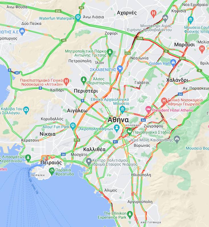 15΄-20΄στην έξοδο για Πειραιά, Περιφερειακή Υμηττού, καθυστερήσεις 10΄-15΄στην έξοδο για Καρέα και καθυστερήσεις προς Αεροδρόμιο: 15΄-20΄ από Μεταμόρφωση έως Κηφισίας.