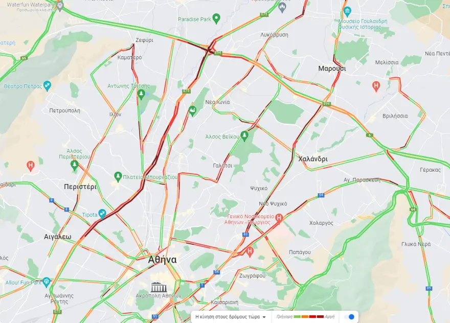 Μεγάλες καθυστερήσεις υπάρχουν και στα δύο ρεύματα του Κηφισού, επί της εθνικής οδού Αθηνών – Λαμίας, από και ως Γέφυρα Λυμάτων αλλά και επί της λεωφόρου Κηφισίας στο ύψος του Ψυχικού.