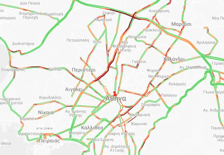 Πολύ αυξημένη είναι η κίνηση των οχημάτων και στην άνοδο της λεωφόρου Κηφισού, από το ύψος Περιστερίου μέχρι και τη Νέα Φιλαδέλφεια.
