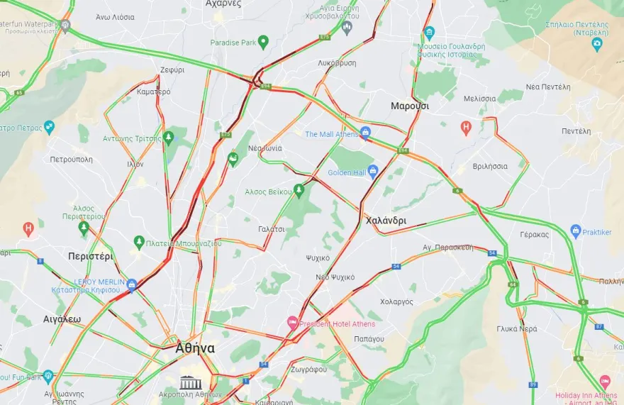 Μποτιλιάρισμα καταγράφεται αυτή την ώρα στον Κηφισό και στα δύο ρεύματα, όπως και σε λεωφόρο Αθηνών και λεωφόρο Κηφισίας.