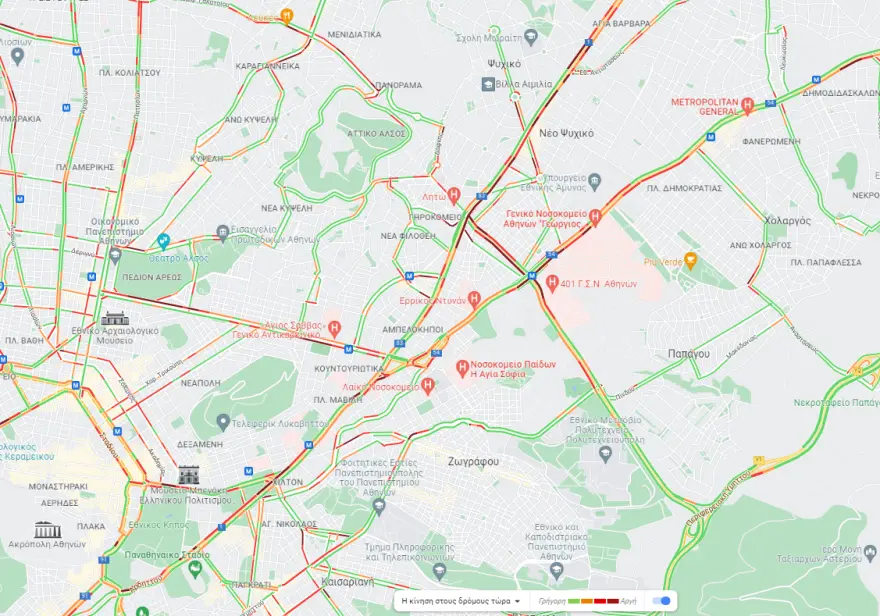 Συγκεκριμένα, κατά τμήματα καταγράφεται κίνηση και στην άνοδο της Κηφισίας και την κάθοδο της Μεσογείων, επί της λεωφόρου Κατεχάκη και στα δύο ρεύματα, αλλά και στη λεωφόρο Αλίμου – Κατεχάκη στο ρεύμα προς Γλυφάδα.