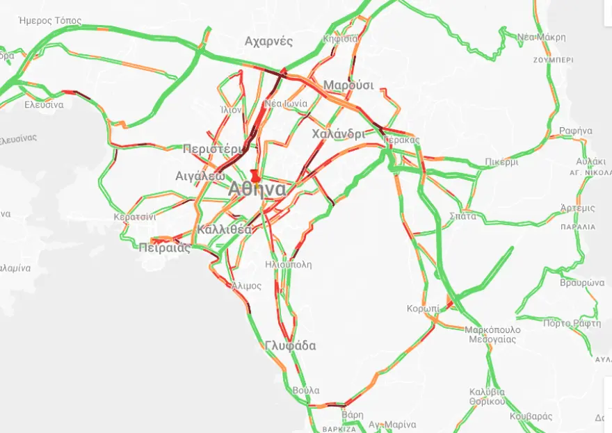Αρκετά αυξημένη είναι για ακόμη ένα πρωινό η κίνηση στους κεντρικούς οδικούς άξονες της Αττικής, με τον Κηφισό να βρίσκεται στο «κόκκινο».