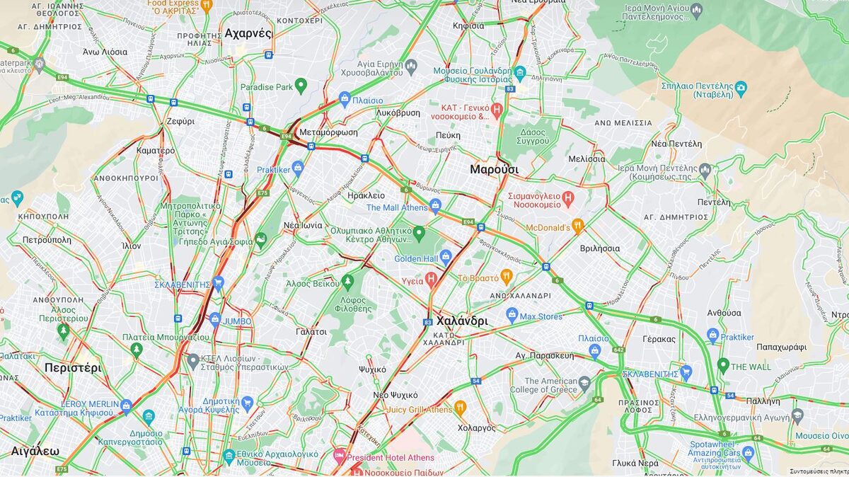 Μποτιλιάρισμα καταγράφεται επίσης στην Κηφισίας, την Αλεξάνδρας και στο κέντρο της Αθήνας.