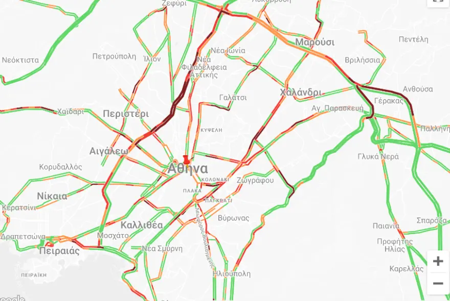 Με χαμηλές ταχύτητες κινούνται οι οδηγοί στην εθνική οδό ενώ μποτιλιάρισμα υπάρχει και στο κέντρο της Αθήνας, στους δρόμους γύρω από το Σύνταγμα αλλά και στην Κηφισίας.