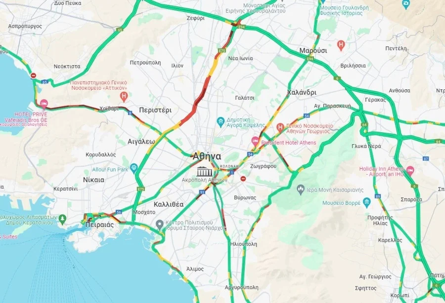 Τέλος, προβλήματα σημειώνονται και στους δρόμους του Πειραιά και κυρίως σε αυτούς που οδηγούν στο λιμάνι.