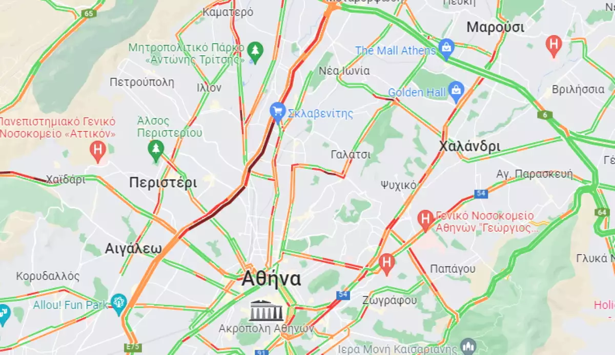 Στον Κηφισό στο ρεύμα προς Κηφισιά, αυξημένη κίνηση σημειώνεται από το Περιστέρι μέχρι τη Νέα Φιλαδέλφεια.