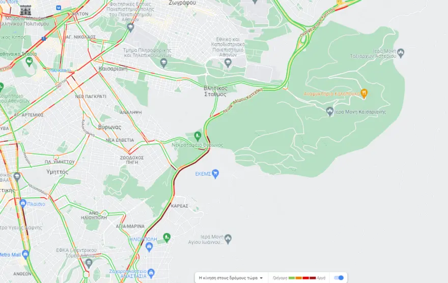 Μποτιλιάρισμα υφίστανται οι οδηγοί στη λεωφόρο Κατεχάκη από την Ηλιούπολη προς το Κοιμητήριο του Βύρωνα, λόγω καραμπόλας τριών οχημάτων.