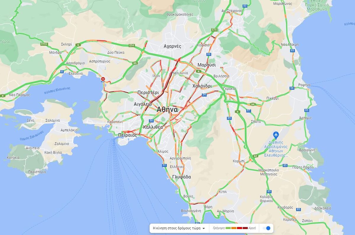 Στον σχετικό χάρτη αποτυπώνεται πλήρως η εικόνα που υπάρχει αυτή την ώρα στους δρόμους της Αττικής, η οποία είναι αρκετά δύσκολη.