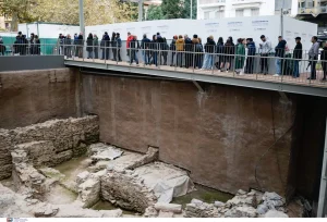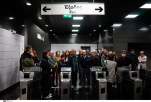 Πλήθος κόσμου συρρέει σήμερα, από το πρωί για να δει από μέσα τον σταθμό του μετρό «Αγία Σοφία», στη Θεσσαλονίκη.