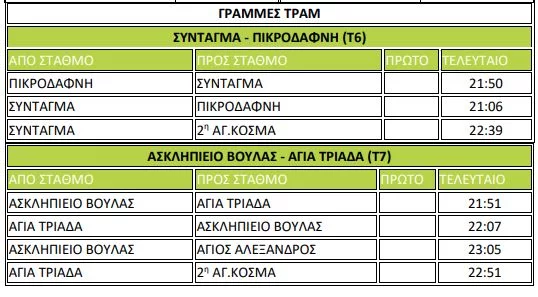 Σύμφωνα με τον ΟΑΣΑ, τα δρομολόγια των γραμμών λεωφορείων και τρόλεϊ θα έχουν ολοκληρωθεί ως τις 23:00. Αυτό σημαίνει ότι οι τελευταίες αναχωρήσεις από τις αφετηρίες αναμένονται μεταξύ 21:00-22:00.