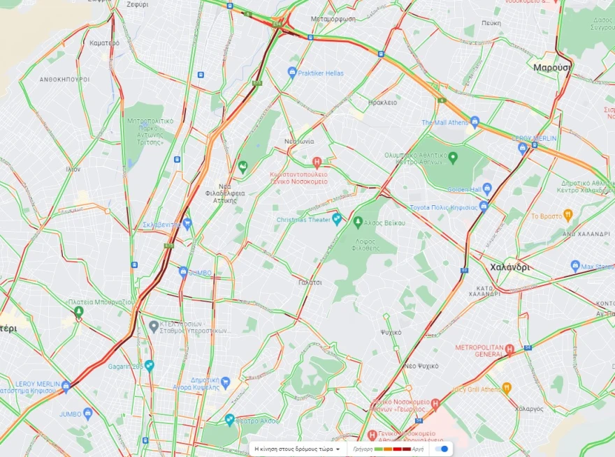 Εικόνα της κίνησης τώρα στο Λεκανοπέδιο Αττικής