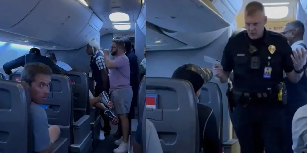 Ο πρώτος άνδρας ρώτησε τη γυναίκα αν είναι καλά, πριν οι επιβάτες της πουν να μετακινηθεί σε άλλη άδεια θέση μακριά από τον σύντροφό της. Καθώς εκείνη μετακινείται κατά μήκος του διαδρόμου, ο σύζυγος φώναξε ότι δέχθηκε επίθεση από τη γυναίκα και ισχυρίζεται ότι τον χαστούκισε, σύμφωνα με τα πλάνα. «Όχι, δεν σου επιτέθηκα», φώναξε εκείνη ως απάντηση. «Έβαλα το χέρι μου στο στόμα σου για να σε κάνω να το βουλώσεις», του είπε.