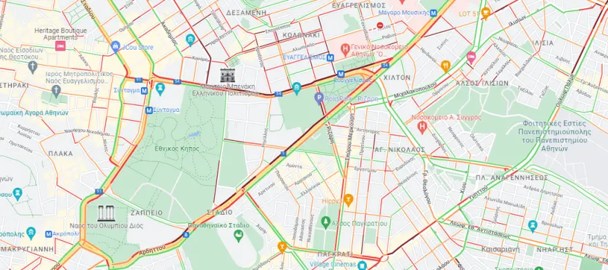 Προβλήματα υπάρχουν και στο κέντρο της Αθήνας, λόγω της συγκέντρωσης γιατρών και νοσηλευτών στα δημόσια νοσοκομεία έξω από τη Βουλή, στο πλαίσιο της στάσης εργασίας τους έως τις 3:00 μμ.