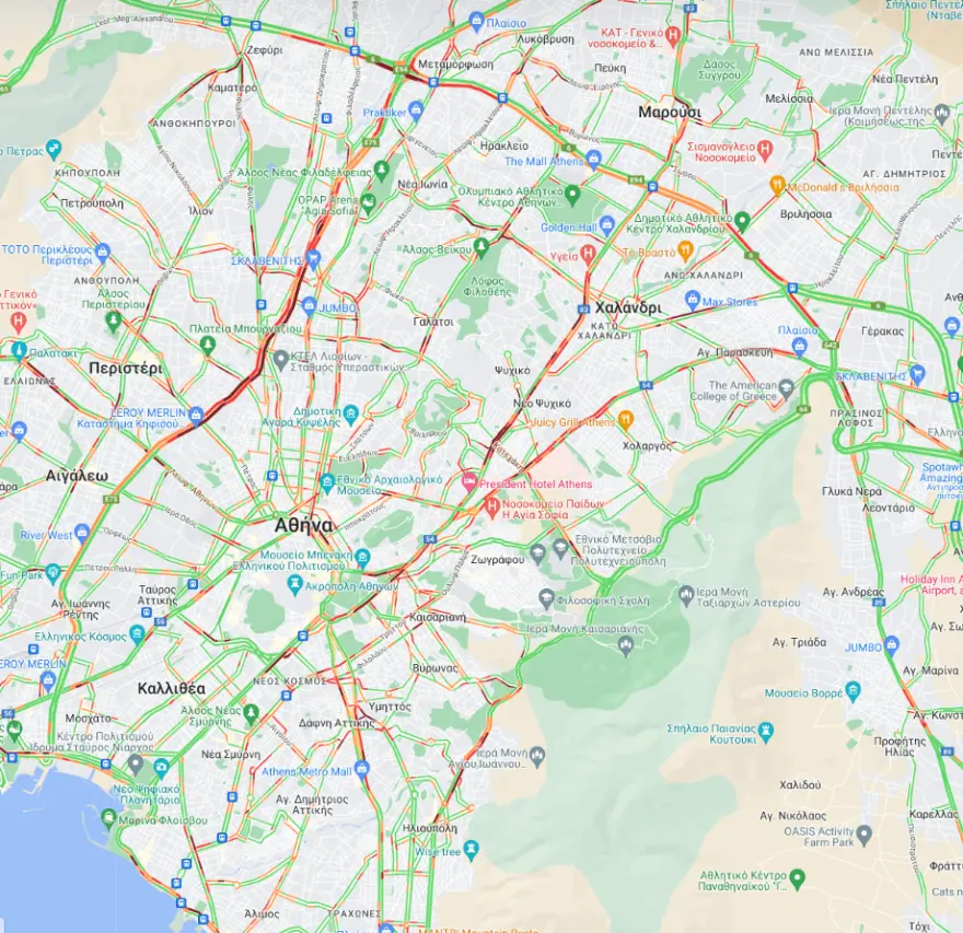 20'-25' από Αγία Παρασκευή έως Κηφισίας στην Περιφ. Υμηττού.