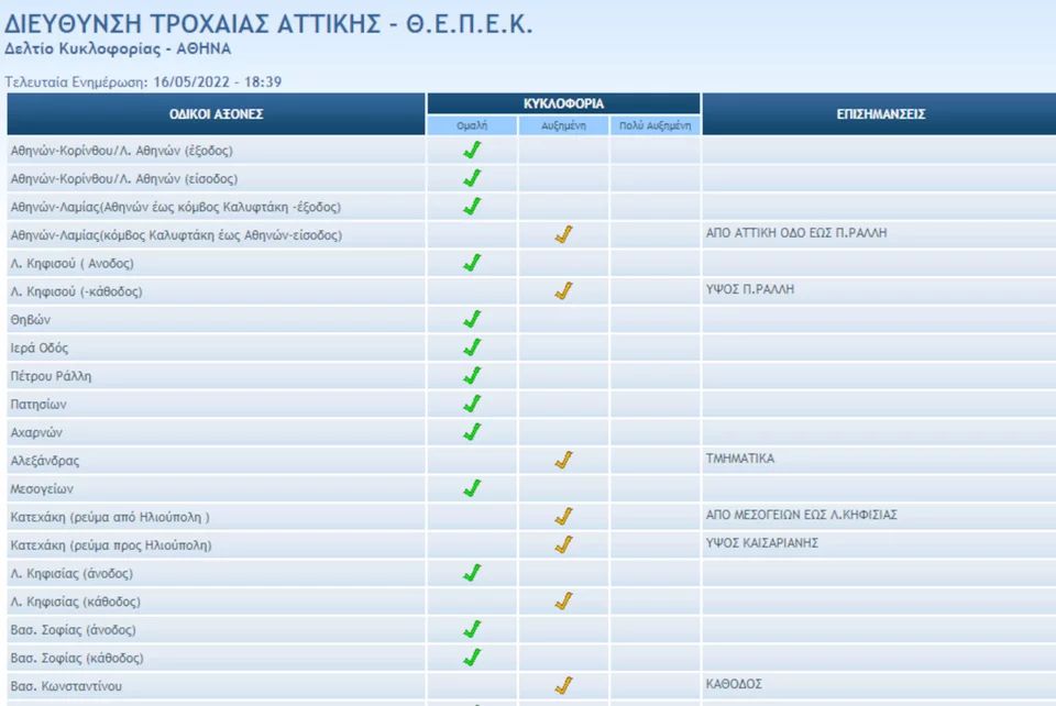 Στο «κόκκινο» είναι η κίνηση που καταγράφεται το απόγευμα της Δευτέρας 16 Μαΐου, τόσο στην κάθοδο της Λεωφόρου Κηφισού όσο και στην Κηφισίας, επίσης στο καθοδικό της ρεύμα.