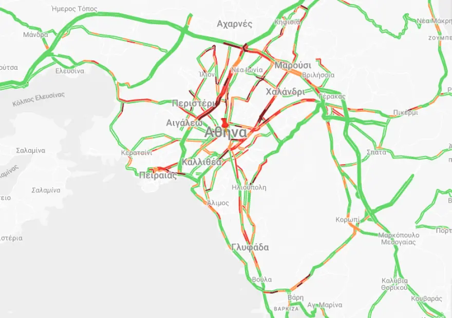 Στο «κόκκινο» είναι η κίνηση που επικρατεί από νωρίς το πρωί της Τετάρτης (25/9) στους κεντρικούς οδικούς άξονες της Αττικής.