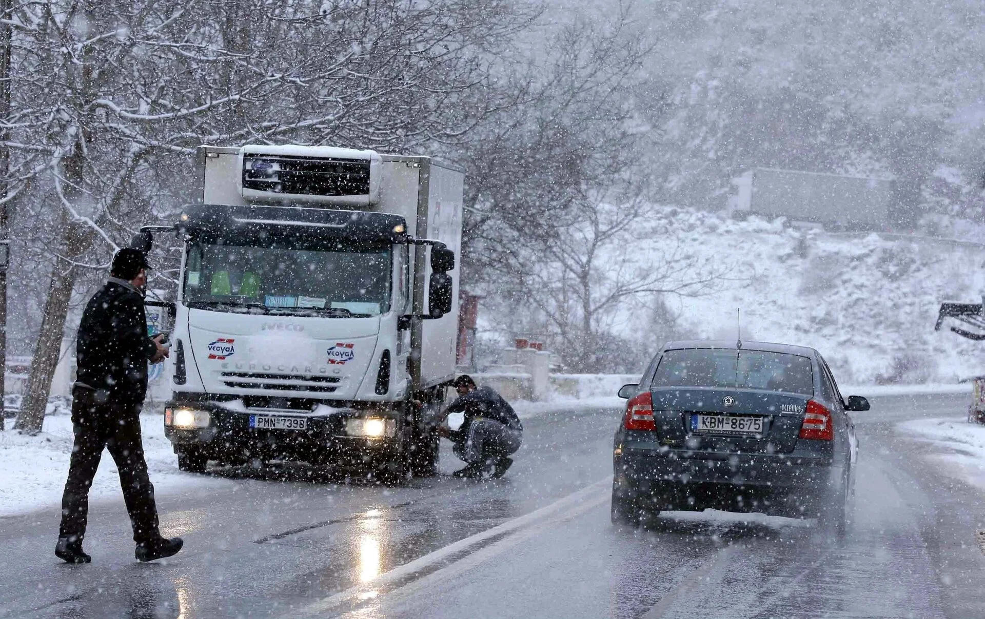 Σε αρκετά σημεία του οδικού δικτύου λόγω του χιονιού απαγορεύεται η κυκλοφορία βαρέων οχημάτων μέγιστου επιτρεπόμενου βάρους άνω των 3,5 τόνων.