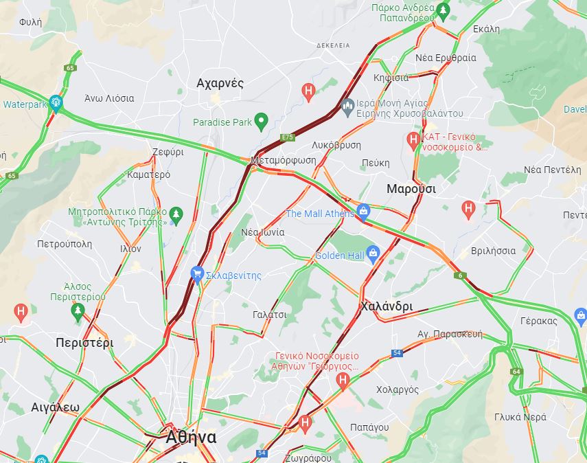 Ως συνέπεια είναι τα οχήματα να είναι σχεδόν ακινητοποιημένα και να κινούνται με πολύ χαμηλούς ρυθμούς από το ύψος της Κηφισιάς.