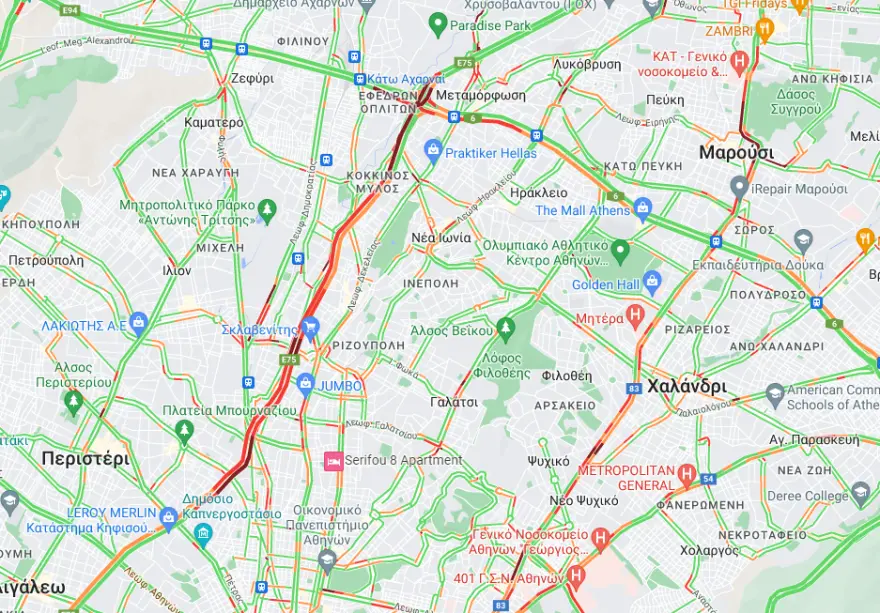 Το μποτιλιάρισμα ξεκινά από το ύψος της Κηφισιάς και συνεχιζόταν μέχρι το ύψος της Δυρραχίου.