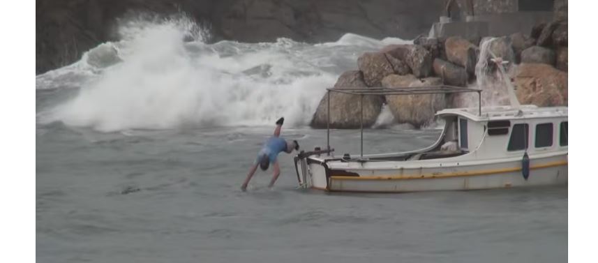 «Μου λέει “η βάρκα βουλιάζει”. Εκεί τρελάθηκα. Βούτηξα, μπήκα μέσα στη βάρκα, την τράβηξα λίγο πιο βαθιά, αλλά ήταν πολύ επικίνδυνα και έπρεπε να βουτήξω μέσα στη θάλασσα. Ήτανε 10 μποφόρ και ήταν πολύ επικίνδυνα. Παραλίγο να είχα πνιγεί».